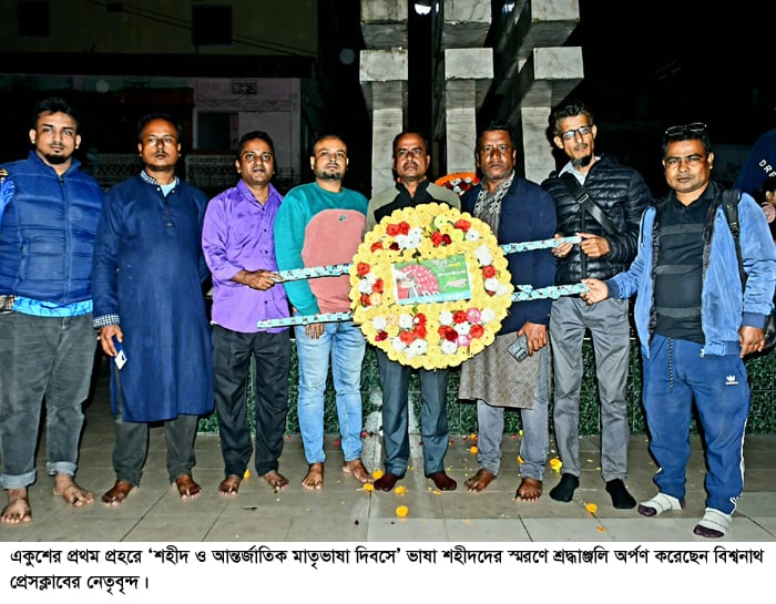 একুশের প্রথম প্রহরে বিশ্বনাথ প্রেসক্লাবের পক্ষ থেকে শ্রদ্ধাঞ্জলি অর্পণ