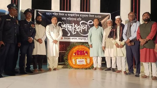সুনামগঞ্জের জগন্নাথপুরে মহান শহীদ দিবস ও আন্তর্জাতিক মাতৃভাষা দিবস-২০২৬ উপলক্ষে জগন্নাথপুর উপজেলা প্রেসক্লাব-এর উদ্যোগে ভাষা শহীদদের প্রতি গভীর শ্রদ্ধা নিবেদন করা হয়েছে। দিবসের প্রথম প্রহরে জগন্নাথপুর উপজেলা প্রেসক্লাবের সভাপতি মোঃ ওয়াহিদুর রহমান, সাধারণ সম্পাদক মোঃ শাহজাহান মিয়া, যুগ্ন সাধারন সম্পাদক মানবাধিকার কর্মী মোঃ আলী আজগর ইমন, কোষাধক্ষ্য মিসলুর রহমান, মহিলা সম্পাদিকা মোছাঃ কলি বেগম, সদস্য মানবাধিকার কর্মী মোঃ তৈবুর রহমান, মানবাধিকার কর্মী শাহ্ ফুজায়েল আহমদ সহ বিভিন্ন গণমাধ্যম কর্মী আয়ুর্বেদিক চিকিৎসক মোঃ শাহীন আলম, মোঃ কয়েছ মামুন,বাবুল দাস, মোঃ সুজন মিয়া, মোঃ আমিনুল ইসলাম কনু মিয়া, মোঃ আল আমিন রাব্বী সহ, সকল সাংবাদিকবৃন্দ জগন্নাথপুর শহীদ মিনার-এ পুষ্পস্তবক অর্পণের মাধ্যমে মহান ভাষা আন্দোলনের বীর শহীদদের স্মৃতির প্রতি সম্মান জানান।