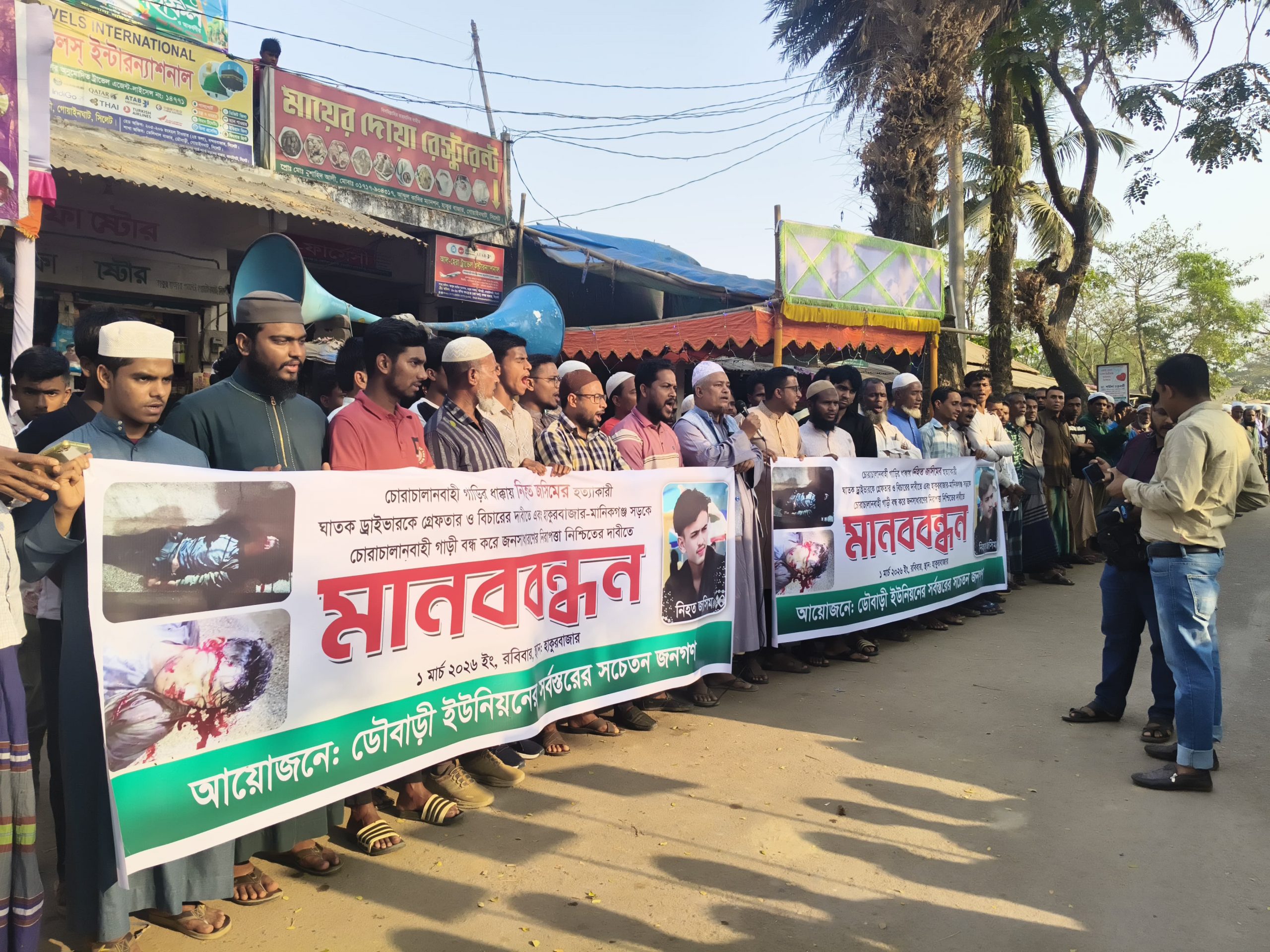 গোয়াইনঘাটে জসিম হত্যার প্রতিবাদে মানববন্ধন চোরাচালানবাহী গাড়ি বন্ধে ২৪ ঘণ্টার আল্টিমেটাম