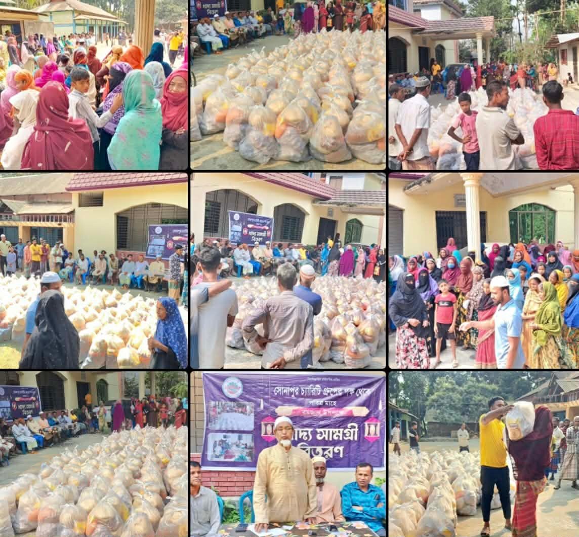 শনিবার (২৮ ফেব্রুয়ারী) বাদ জোহর সোনাপুর গ্রামসহ চ্যারিটি গ্রুপ'র পরিচালকের বাড়ীতে গ্রুপের পরিচালক যুক্তরাজ্য প্রবাসী আলহাজ আজিজুর রহমান সাহেবের পক্ষ থেকে ওই খাদ্যসামগ্রী বিতরণ করা হয়।
