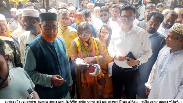 এ সময় বাজারের বিভিন্ন দোকান পরিদর্শন করে চাল, ডাল, তেল, সবজিসহ নিত্যপ্রয়োজনীয় পণ্যের মূল্য যাচাই করা হয়। বাজার পরিস্থিতি স্বাভাবিক রাখতে এ ধরনের অভিযান অব্যাহত থাকবে বলে সংশ্লিষ্ট কর্তৃপক্ষ জানান।