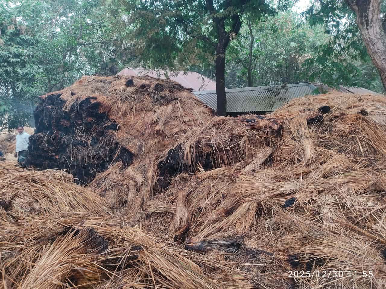 এই খড়ের গাদায় শ্যেন দৃষ্টি পড়ে দুর্বৃত্তদের। রাতের আঁধারে 'প্রতিহিংসার' আগুনে পুড় ছাই হয় খড়ের গাদা। এই অগ্নিকাণ্ডে কোনো কোনো কৃষকের লক্ষাধিক টাকার ক্ষতি হয়েছে বলে জানা গেছে। অনেকে থানায় লিখিত অভিযোগ দিয়েছেন।