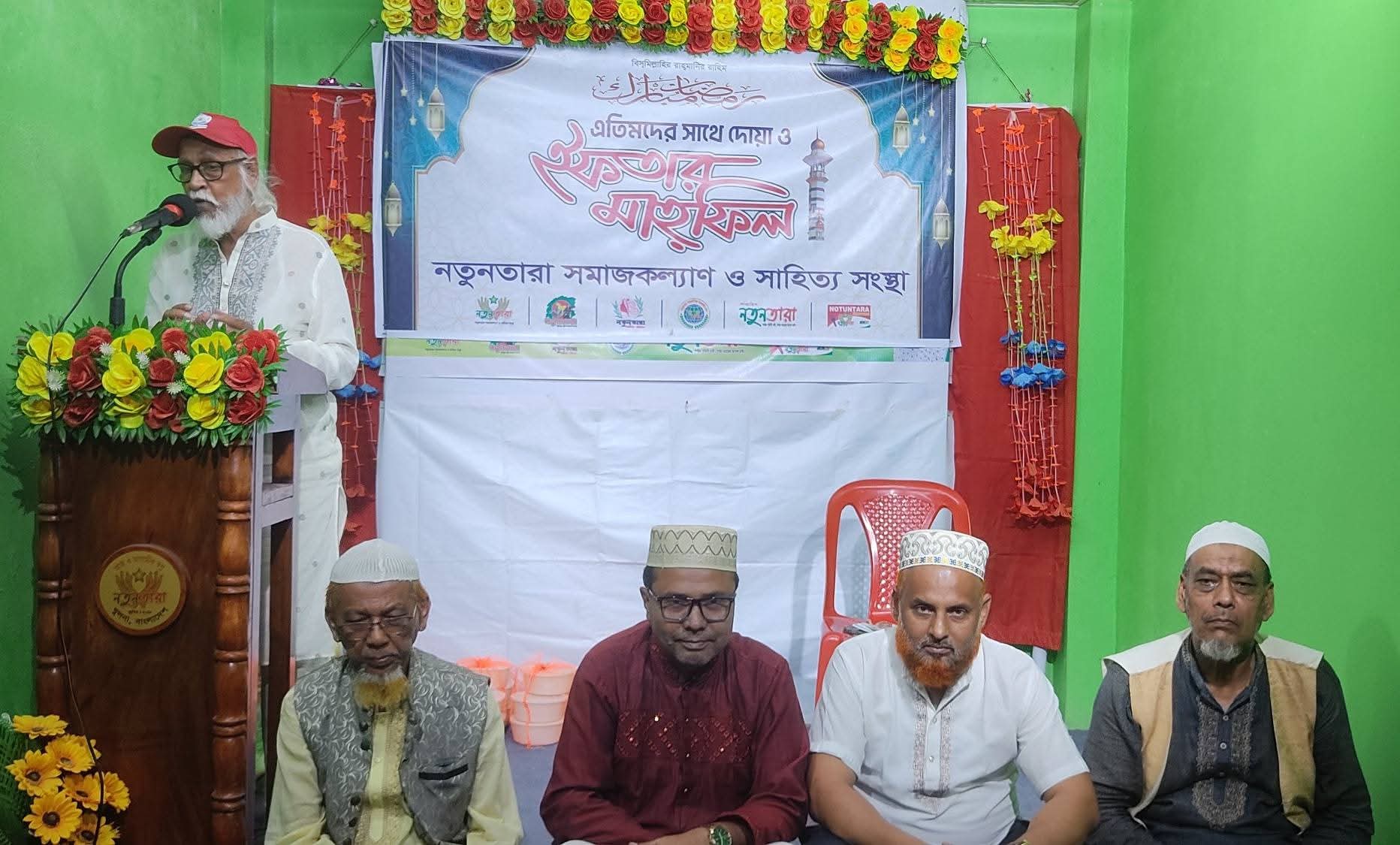 " সকল হৃদয়ে ধাবিত হোক সত্য সুন্দরের প্রতিধ্বনি " শ্লোগানে নতুনতারা সমাজকল্যাণ ও সাহিত্য সংস্থা আয়োজিত মাসব্যাপী ইফতার ও দোয়া মাহফিলের সমাপনী আয়োজন ২৬ রমজান ১৬ মার্চ ২০২৬ সোমবার বিকাল ৫ টা নতুনতারা ভবন খুলনায় অনুষ্ঠিত হয়। কেন্দ্রীয় চেয়ারম্যান মোঃ আশরাফুল আলম এর ধন্যবাদ বক্তব্যের মাধ্যমে আয়োজনের শুভ সূচনা হয়। কেন্দ্রীয় মহাসচিব শাখাওয়াৎ হোসেন স্বপন এর সভাপতিত্বে ও নতুনতারা প্রতিষ্ঠাতা মহাপরিচালক সাইফুর মিনা এর পরিচালনায় অনুষ্ঠানে প্রধান অতিথি হিসেবে উপস্থিত ছিলেন বিশিষ্ট শিক্ষাবিদ ও গবেষক প্রফেসর মোঃ আব্দুল মান্নান। প্রধান আলোচক ছিলেন নজরুলের মানুষখ্যাত সৈয়দ আলী হাকিম। বিশেষ অতিথি ছিলেন রুপসা সাহিত্য পরিষদের সভাপতি বদিউল আলম চৌধুরী।