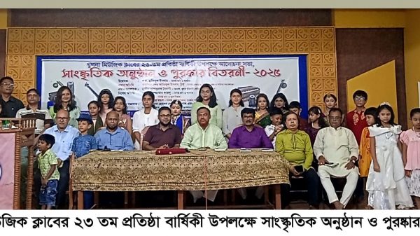 খুলনা অফিস: খুলনা মিউজিক ক্লাবের ২৩ তম প্রতিষ্ঠা বার্ষিকী উপলক্ষে উমেশ চন্দ্র পাবলিক লাইব্রেরীতে সাংস্কৃতিক অনুষ্ঠান, আলোচনা সভা ও পুরস্কার বিতরণী অনুষ্ঠিত হয়। উদ্বোধন করেন স. ম. হাফিজুল ইসলাম।