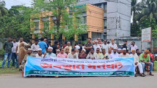 এস.এম. সাইফুল ইসলাম কবির, বাগেরহাট জেলা প্রতিনিধি: দক্ষিণ-পশ্চিমাঞ্চলের বিশ্বের সর্ববৃহৎ ম্যানগ্রোভ বনাঞ্চল মৎস্যভান্ডার নামে খ্যাতবিশ্ব ঐতিহ্য সুন্দরবনের উপকূলের বাগেরহাটে চারটি আসন বহালের দাবিতে জেলা নির্বাচন অফিস ঘেরাও করেছে সর্বদলীয় সম্মিলিত
