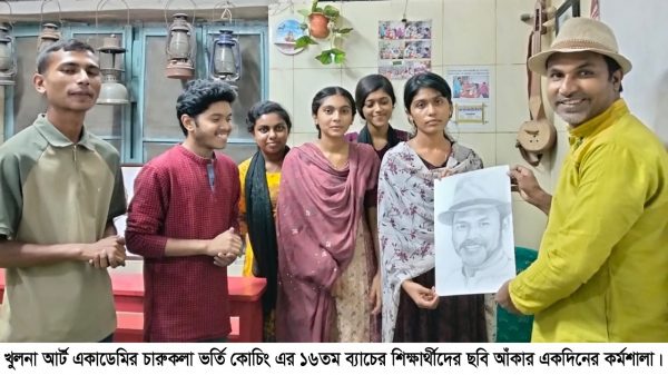 খুলনা অফিস:- ঢাকা বিশ্ববিদ্যালয়ের চারুকলা অনুষদের ভর্তি পরীক্ষা সামনে রেখে খুলনা আর্ট একাডেমিতে ১৯ নভেম্বর ২০২৫: অনুষ্ঠিত হলো ১৬তম ব্যাচের শিক্ষার্থীদের নিয়ে ছবি আঁকার একদিনের কর্মশালা সকাল ৯টা থেকে