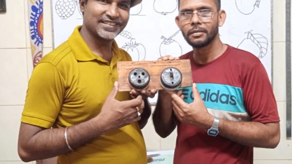 খুলনা অফিস: খুলনা আর্ট একাডেমির ঐতিহ্য সংরক্ষণশালায় বিশিষ্ট ব্যবসায়ী মোঃ মানিক হোসেন একটি অনন্য উপহার তুলে দেন চিত্রশিল্পী মিলন বিশ্বাসের হাতে। আশির দশকের এক মূল্যবান নিদর্শন—কারেন্টের সুইচ বোর্ড ও