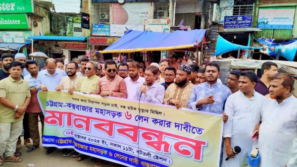 মোহাম্মদ আব্বাস উদ্দিন, চট্টগ্রাম জেলা প্রতিনিধি চট্টগ্রাম-কক্সবাজার মহাসড়ককে ৬ লেনে উন্নীত করার দাবিতে মানববন্ধন অনুষ্ঠিত হয়েছে। ৪ অক্টোবর, শনিবার সকাল ১১ টায় লোহাগাড়া উপজেলা সদরের বটতলী মোটর স্টেশনে “চট্টগ্রাম-কক্সবাজার মহাসড়ক