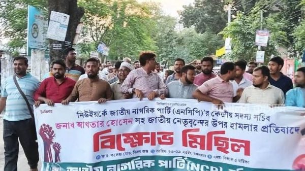 মোঃ ইউসুফ খাঁন, রংপুর নিউইয়র্কে জাতীয় নাগরিক পার্টির (এনসিপি) কেন্দ্রীয় সদস্য সচিব আখতার হোসেনসহ জাতীয় নেতৃবৃন্দের উপর হামলার প্রতিবাদে বিক্ষোভ মিছিল ও সমাবেশ করেছে জাতীয় নাগরিক পার্টি, কুড়িগ্রাম জেলা
