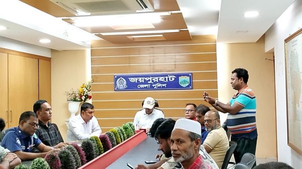 রাশেদ ইসলাম, জয়পুরহাট: শারদীয় দূর্গাপূজা ঘিরে জয়পুরহাটে নেওয়া হয়েছে সর্বোচ্চ নিরাপত্তা ব্যবস্থা। পূজাকে কেন্দ্র করে আইনশৃঙ্খলা পরিস্থিতি নিয়ন্ত্রণে রাখতে সাংবাদিকদের সঙ্গে মতবিনিময় সভার আয়োজন করে জেলা পুলিশ প্রশাসন। শনিবার