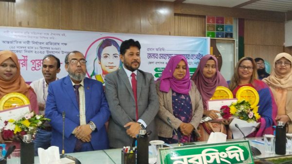 সানজিদা রুমা, নরসিংদী: “নারী ও কন্যার প্রতি সহিংসতা বন্ধে ঐক্যবদ্ধ হই, ডিজিটাল নিরাপত্তা নিশ্চিত করি” এই প্রতিপাদ্যকে সামনে রেখে নরসিংদীতে বেগম রোকেয়া দিবস ২০২৫ উদযাপন উপলক্ষে জেলায় নির্বাচিত পাঁচ অদম্য