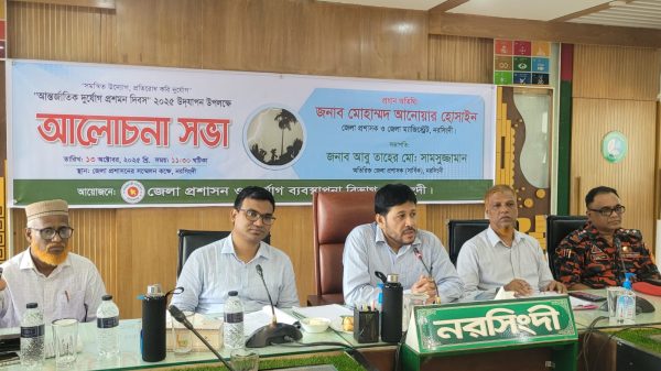 সানজিদা রুমা, নরসিংদী: সমন্বিত উদ্যোগ, প্রতিরোধ করি দুর্যোগ’ এ প্রতিপাদ্যকে সামনে নিয়ে নরসিংদীতে আন্তর্জাতিক দুর্যোগ প্রশমন দিবসে আলোচনা সভা ও র্যালি অনুষ্ঠিত হয়েছে। আজ সোমবার (১৩ অক্টোবর) সকালে নরসিংদী