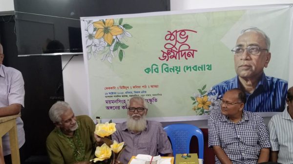 নিজস্ব প্রতিবেদক: গত ১৯ অক্টোবর (রবিবার) কবি ও সংস্কৃতিজন বিনয় দেবনাথ এর জন্মদিন অনুষ্ঠান বিকাল সাড়ে চারটায় ময়মনসিংহ ন্যাশনাল পাবলিক কলেজ মিলনায়তনে (১৬ কালীশঙ্কর গুহ রোড, লারিভ শোরুম সংলগ্ন,