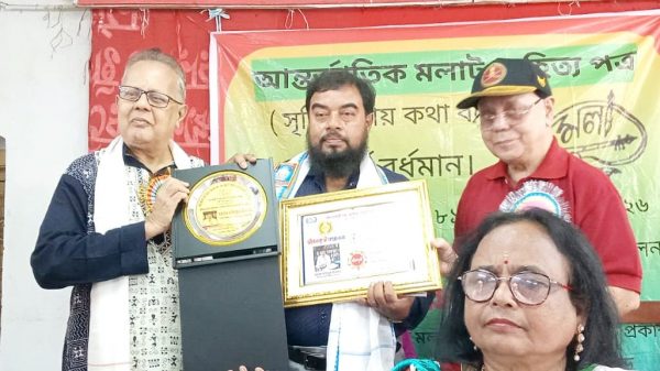নিজস্ব প্রতিবেদক, কলকাতা: কলকাতার কৃষ্ণপদ মেমোরিয়াল ট্রাস্ট ভবনের স্নিগ্ধ পরিবেশে সোমবার যেন কবিতা ও কৃতজ্ঞতার মেলবন্ধন ঘটল। আন্তর্জাতিক মলাট সাহিত্য পত্রিকার উদ্যোগে অনুষ্ঠিত মহাকবি সম্মেলনে বিশিষ্ট কবি ও লেখক